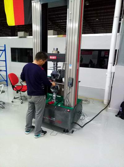 該公司使用三思泰捷的萬(wàn)能試驗(yàn)機(jī)主要用于航空材料的力學(xué)測(cè)試,圖為產(chǎn)品測(cè)試中。